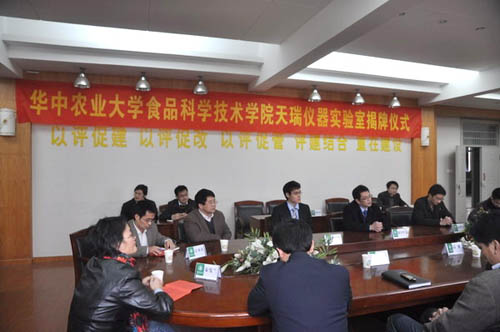 On November 22nd, 2010, the opening ceremony of Skyray Instrument Lab in Huazhong Agricultural University was held in College of Food Science and Technology, Huazhong Agricultural University, which was participated by Mr. Zhao Qingsong, our corporation’s Deputy General Manager, and leaders of the university and the college. Institution of Skyray Instrument Lab in China’s universities signifies the new beginning of cooperation between the corporation and the university, which will help reform the present education mode in China and accelerate the growth of both universities and corporations here.