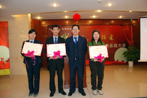 In the meeting, several sales managers were awarded for their extraordinary contribution during 2010. Dr. Liu presented the award to the sales managers personally and told us their extraordinary sales stories.