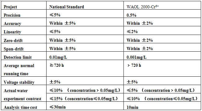 On February, 2011, Environment Protection Department issued the National Environment Protection Standard: “Technical Requirements for Cr6+ Water Quality Online Monitoring Instrument”, which comes into effect on June 1st. In the Standard, specific technical requirements of Cr6+ Water Quality Online Monitoring Instruments are firstly proposed out. Through comparison with on-site testing results to laboratory results, independently developed Skyray Water Quality Online Analyzer- WAOL 2000-Cr6+ fully fits to the requirements of national standards.