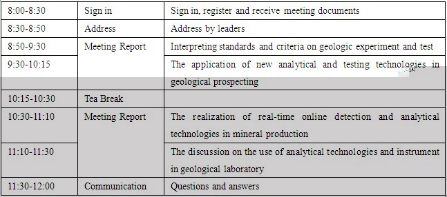 The seminar aims to carry out the spirit of the meeting on geological prospecting strategic action held by four national ministries, further strengthen the communication on geologic experiment and testing technology. The theme of the conference is “geological experiment and testing technology and geological prospecting”, discussion is carried out centering on four topics, “interpreting standards and criteria on geologic experiment and test”, “the application of new analytical and testing technologies in geological prospecting”, “the realization of real-time online detection and analytical technologies in mineral production”, “the discussion on the use of analytical technologies and instrument in geological laboratory”.