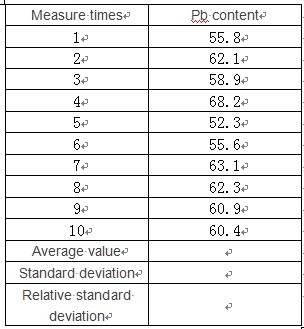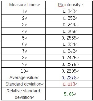 Detection limit of Pb in Alpaka 313(Pb:60ppm):(3×0.013)/ 0.0036 (slope of the work curve)